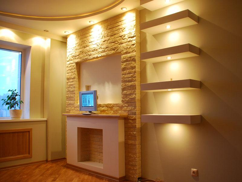 - - монтаж конструкций из гипсокартона на потолках и стенах (разноуровневые конструкции различных форм и конфигураций с освещением);